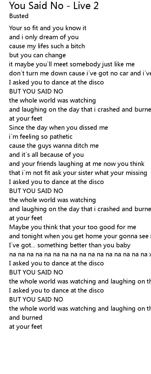 don`t turn me down cause i`ve got no car and i`ve got no money |