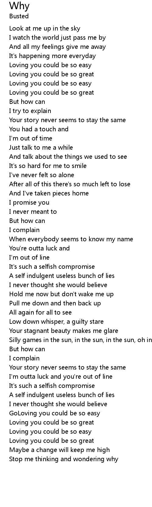Stop me thinking and wondering why |