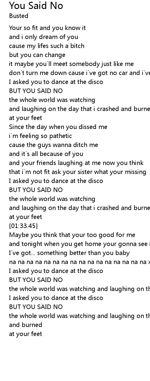 don`t turn me down cause i`ve got no car and i`ve got no money |