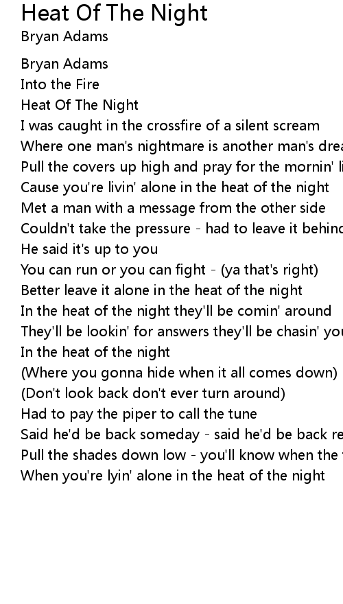 Cause you're livin' alone in the heat of the night |