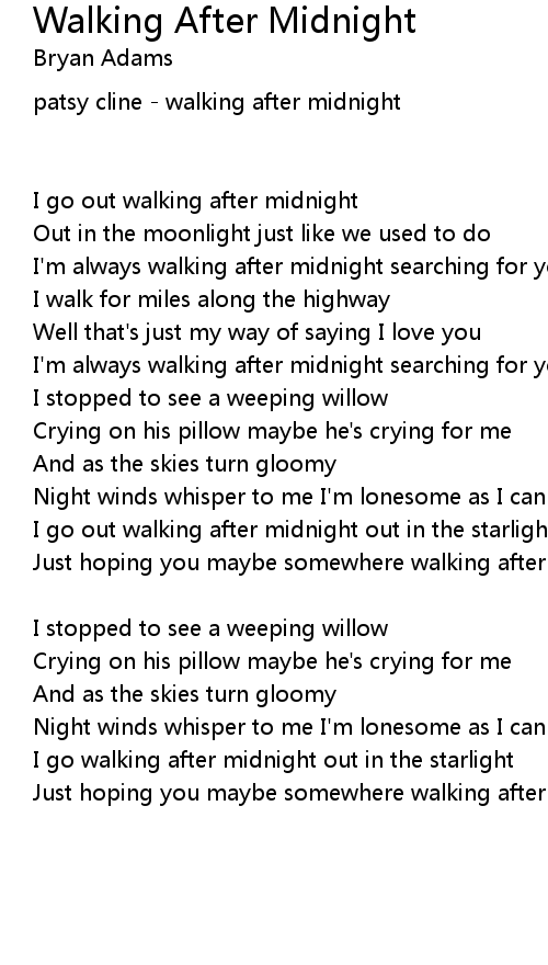 Just hoping you maybe somewhere walking after midnight searching for me |