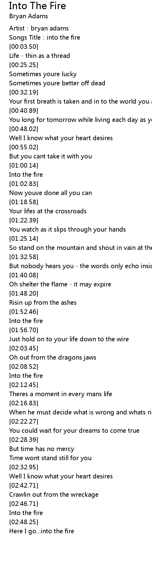 | [02:48.21] | Into the fire |