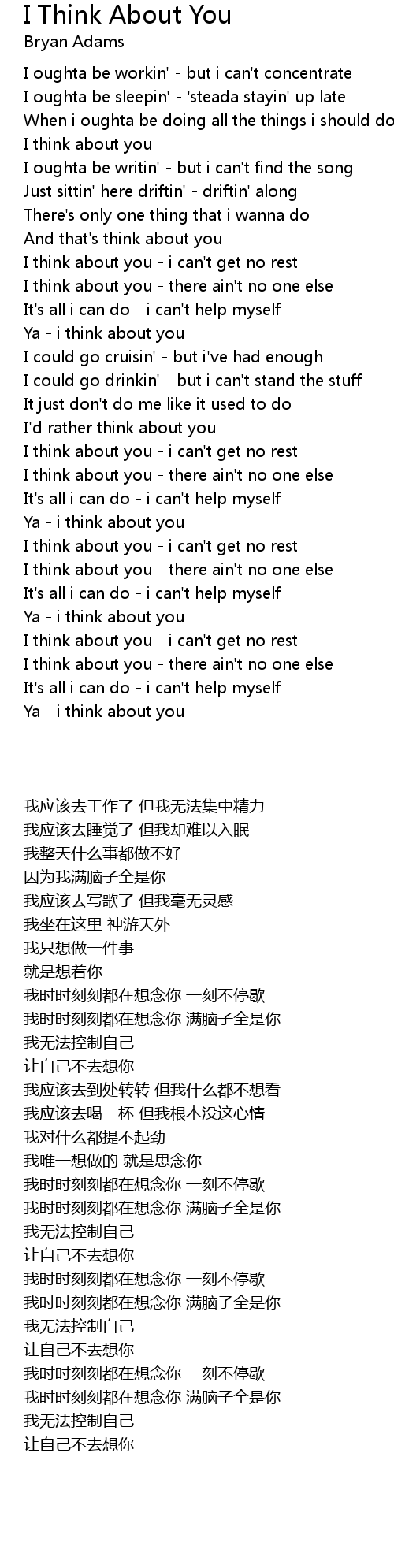 I think about you - i can't get no rest |