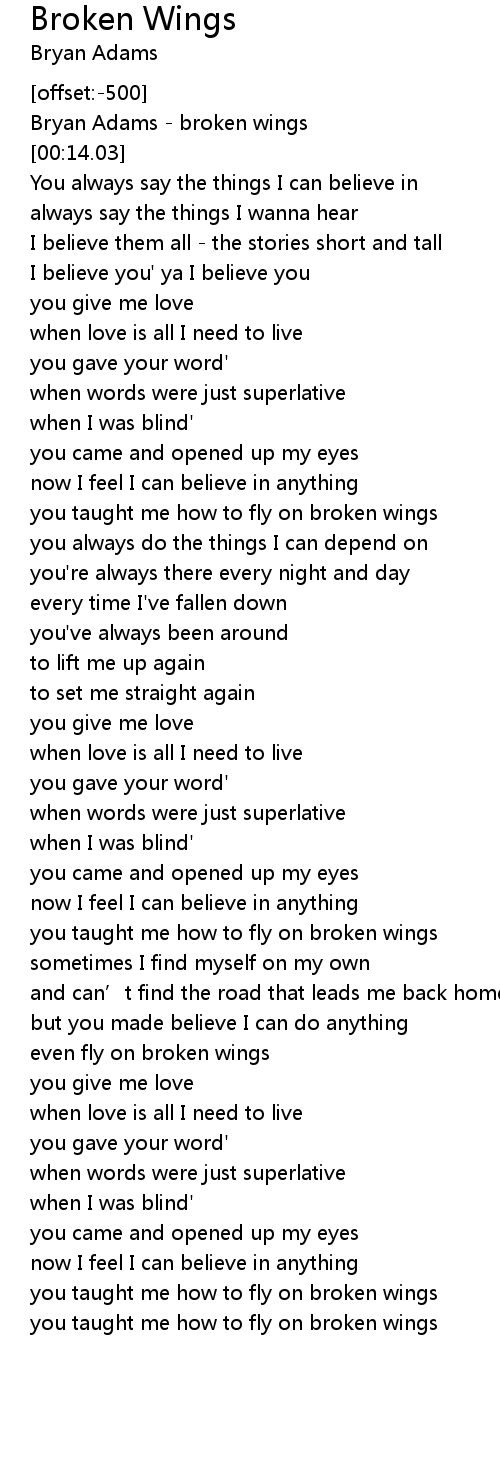 | [00:01.00] | Bryan Adams broken wings |