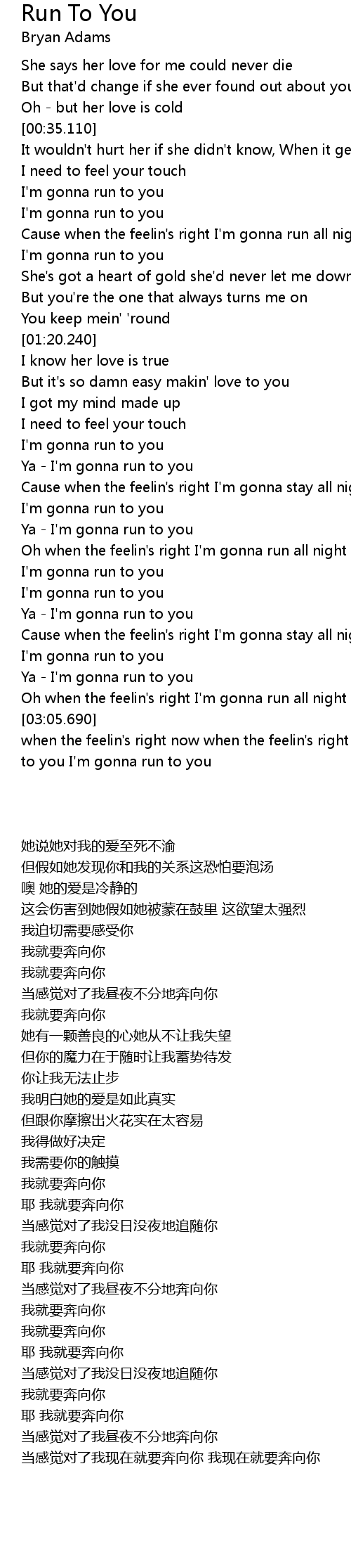 when the feelin's right now when the feelin's right now I'm gonna run to you I'm gonna run to you |