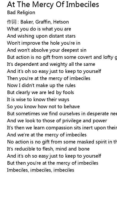 | Song | At The Mercy Of Imbeciles |