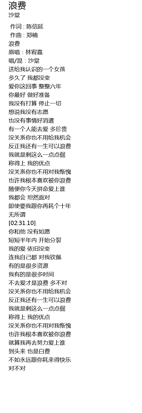 | [04:26.64] | 也许我根本喜欢被你浪费 |