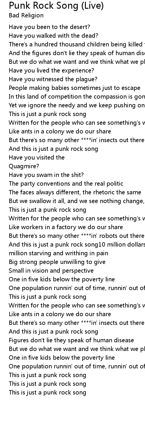 And this is just a punk rock song10 million dollars on a losing campaign20 million starving and writhing in pain |
