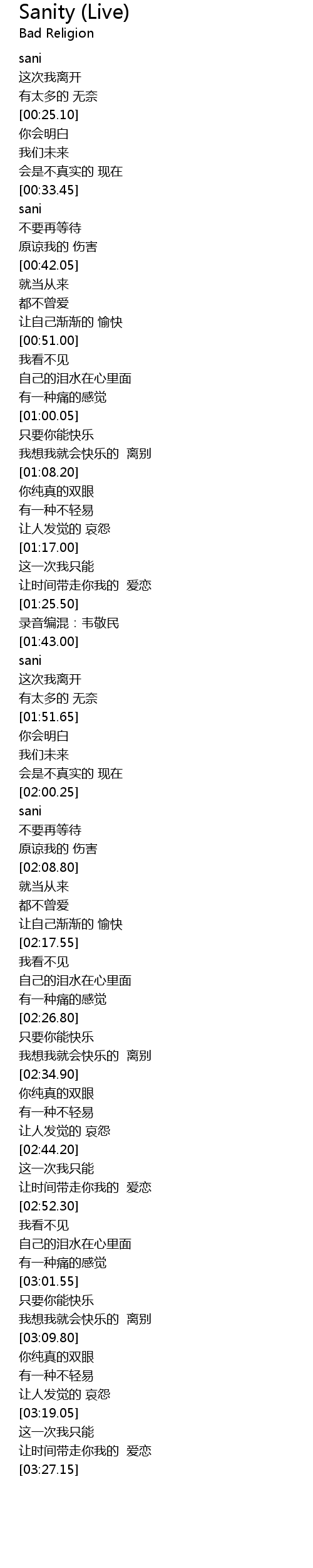 | [01:31.00] | 录音编混:韦敬民 |