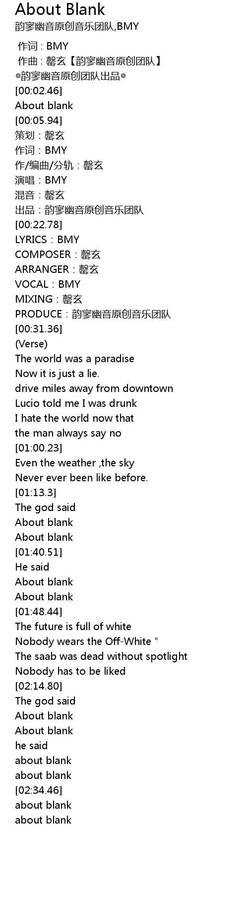 | [00:21.75] | chū pǐn: yùn liáo yōu yīn yuán chuàng yīn yuè tuán duì |