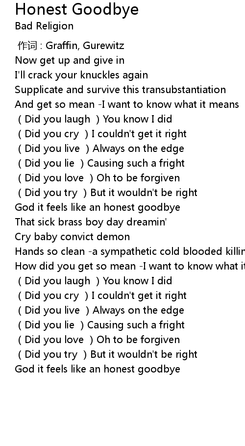 | [02:00.237] | God it feels like an honest goodbye |