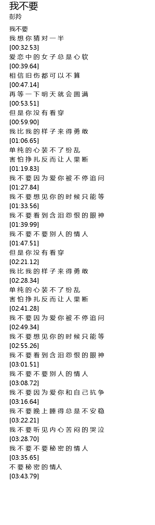| [03:29.39] | 我 不 要 不 要 秘 密 的 情 人 |