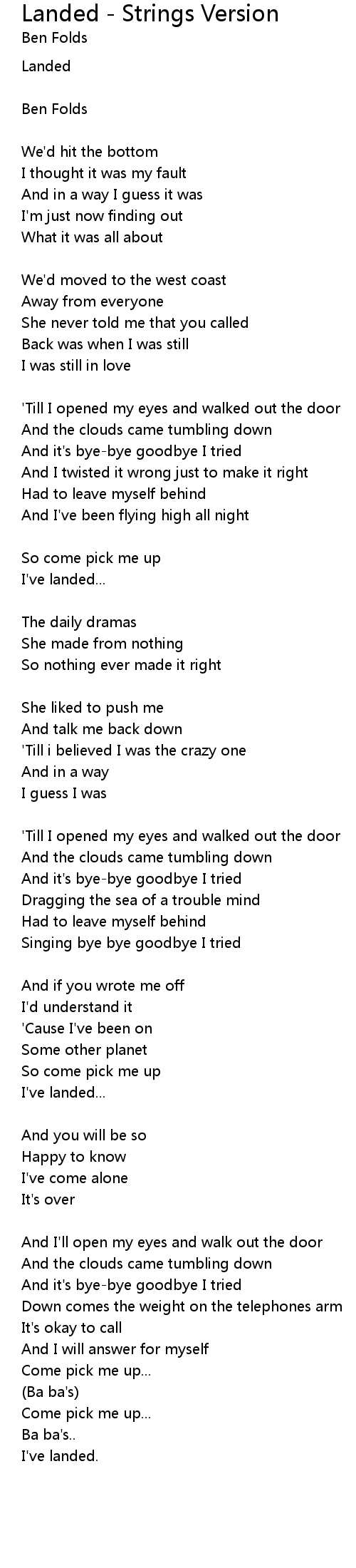 Landed - Strings Version Lyrics