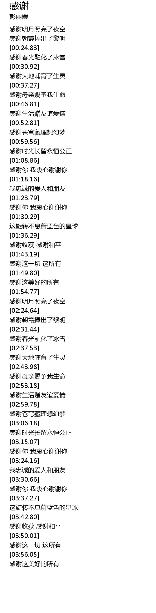 | [03:20.21] | 感谢你 我衷心谢谢你 |