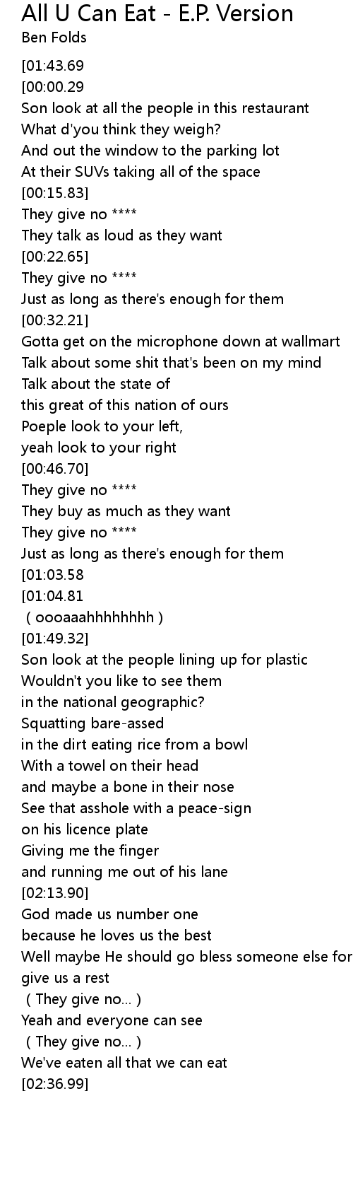 | [01:59.97] | in the dirt eating rice from a bowl |
