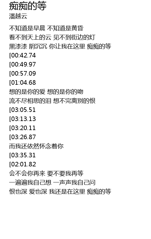 | [02:37.99][00:42.74] | 痴痴的等 你让我痴痴的等 |