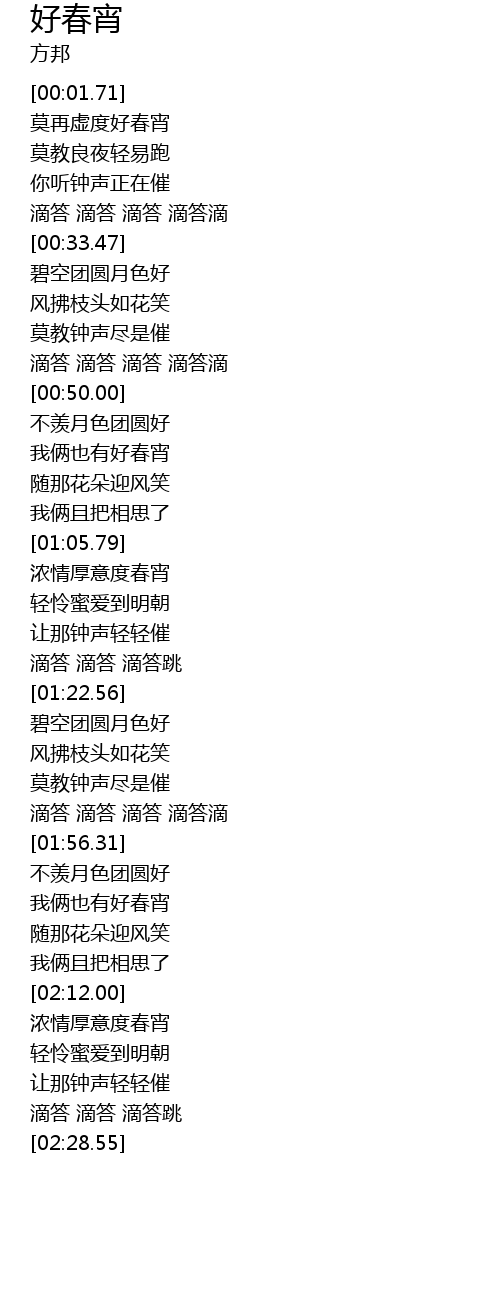 | [00:17.68] | mò zài xū dù hǎo chūn xiāo |