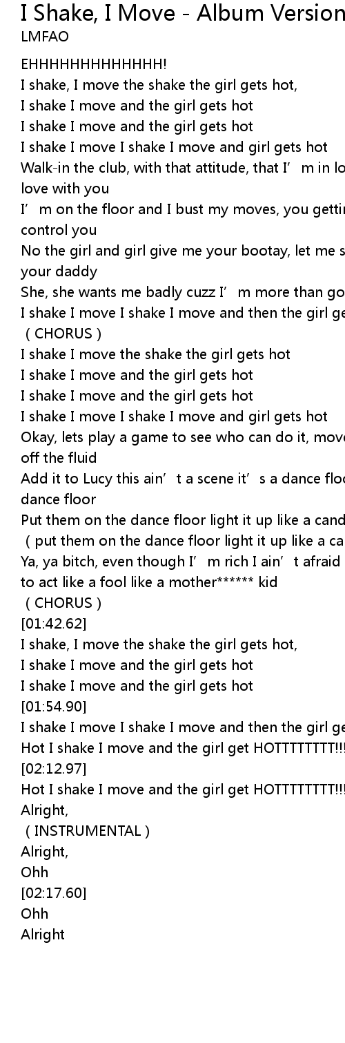 | [00:56.74] | I shake I move I shake I move and then the girl gets hot |