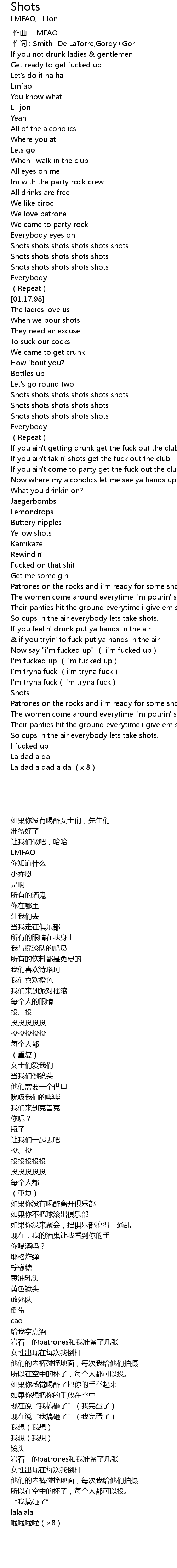 | [00:00.00] | 作曲 : LMFAO |