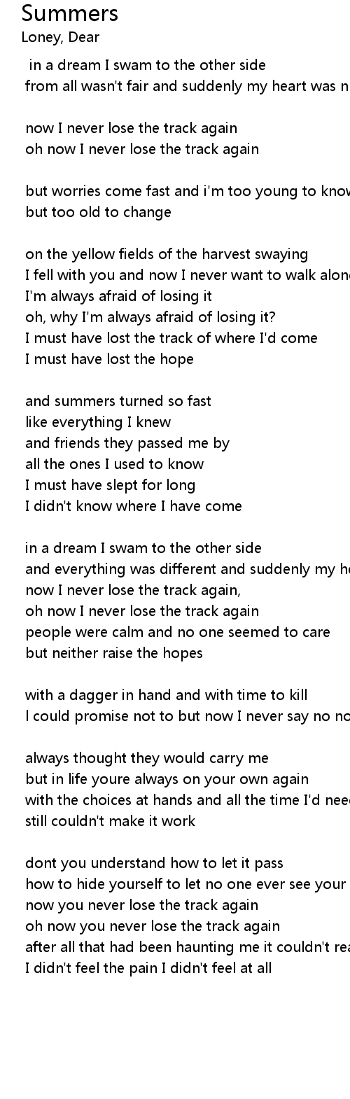 oh now I never lose the track again |