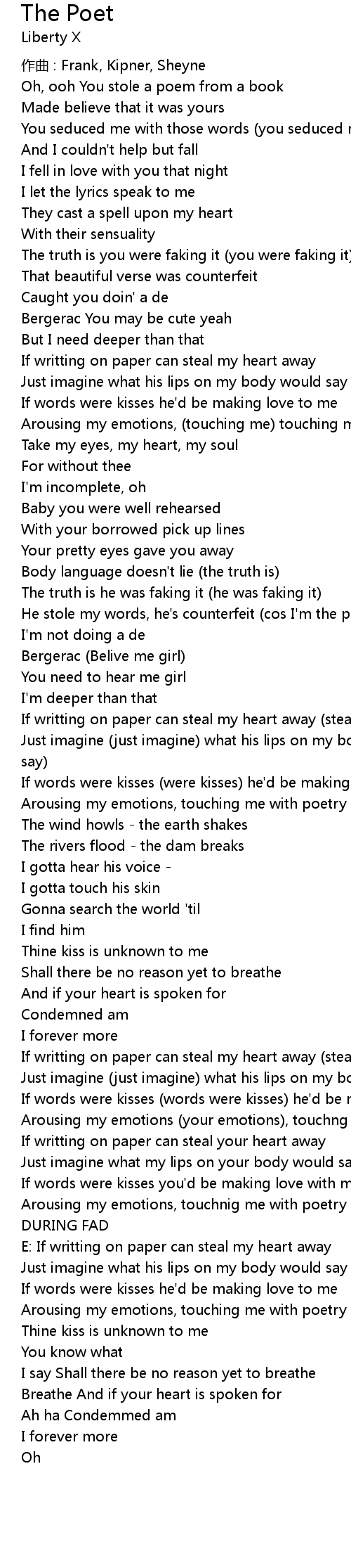 | Arousing my emotions, (touching me) touching me with poetry | |