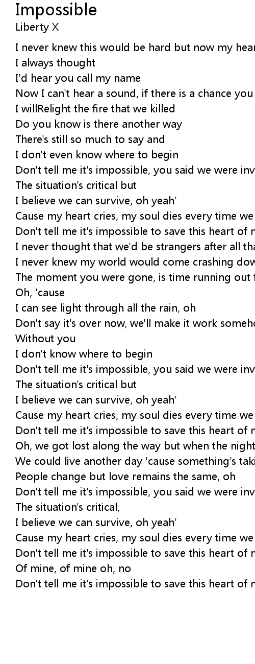 Don't tell me it's impossible to save this heart of mine |
