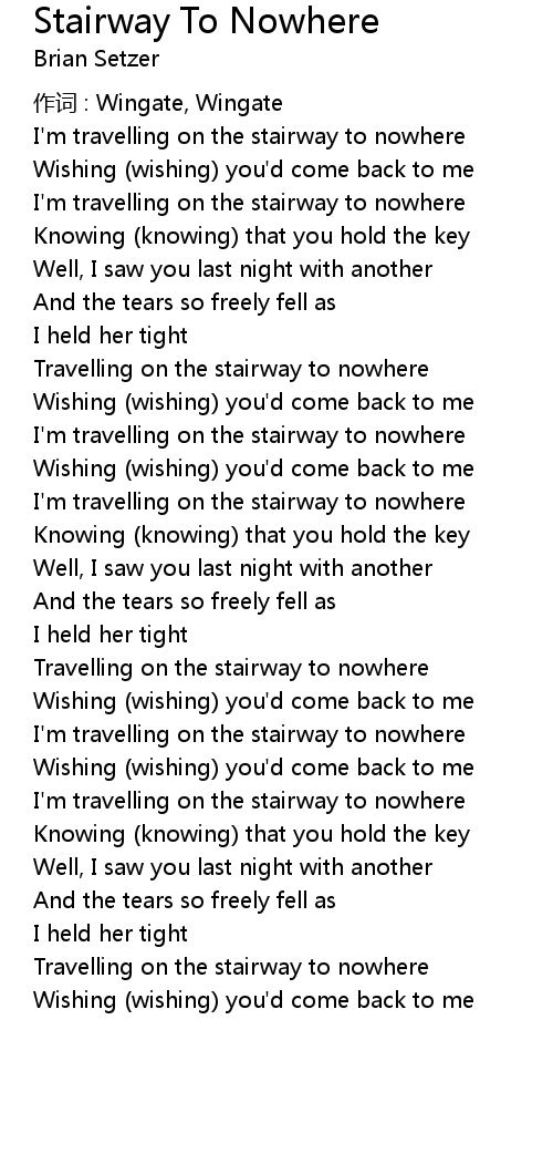 | I' m travelling on the stairway to nowhere | |