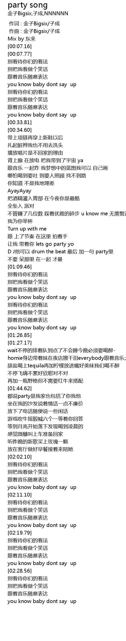 | [01:45.50] | dōu shuō party shì wǒ jiā yě bāo kuò le nǐ wǒ tā |