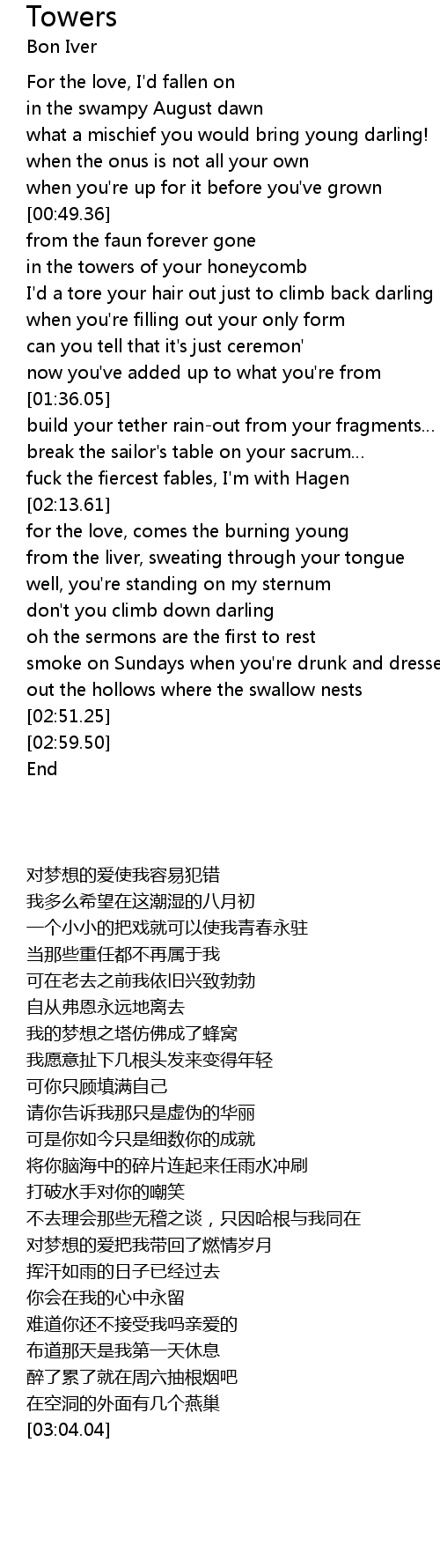 | [01:12.77] | I'd a tore your hair out just to climb back darling |