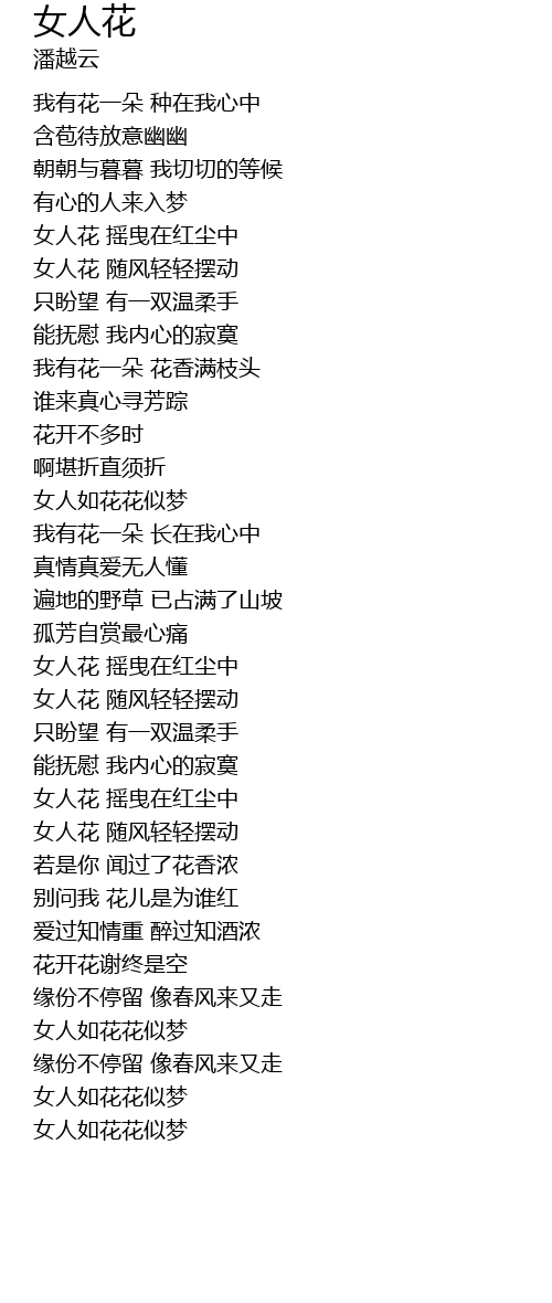 | [01:31.590] | 女人如花花似梦 |
