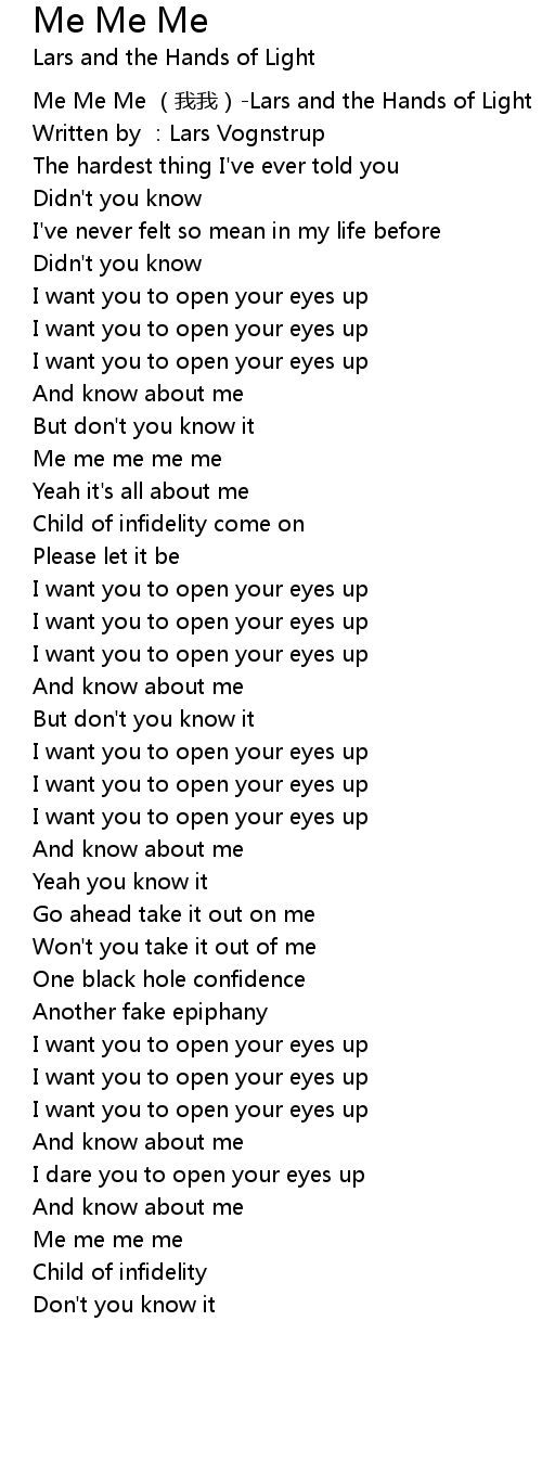 | [00:00.00] | Me Me Me (我我)-Lars and the Hands of Light |