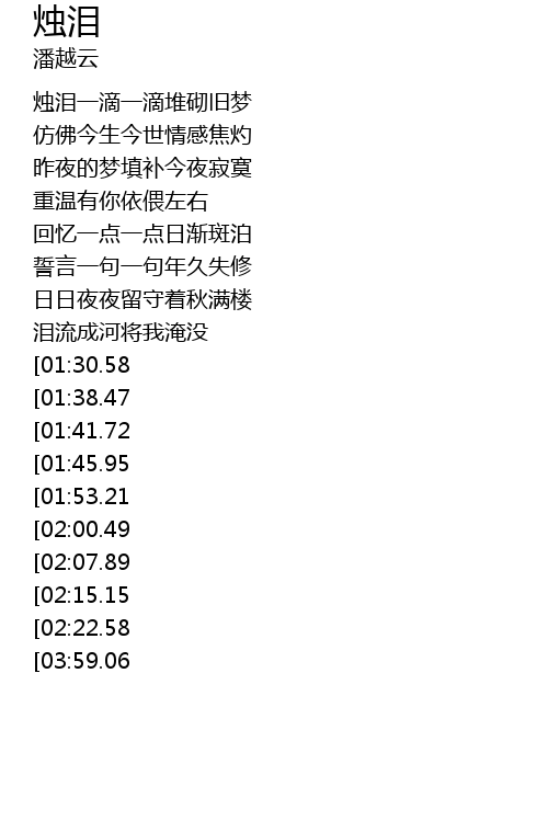 | [04:06.67][03:59.06] | 烛泪一滴一滴堆砌旧梦 |