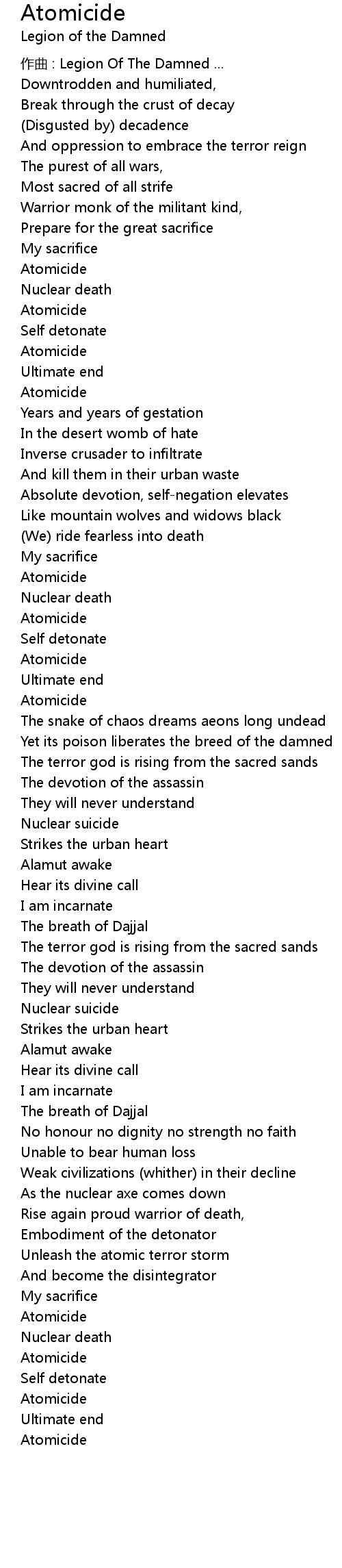 | Song | Atomicide |