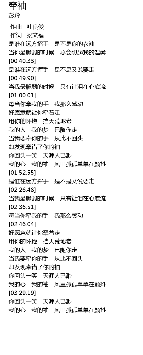 | [03:02.06] | 当我要牵你的手 从此不回头 |