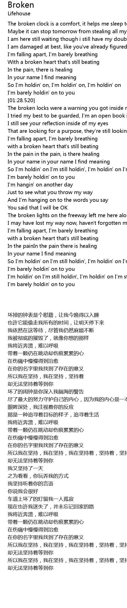| [00:50.970] | With a broken heart that' s still beating |