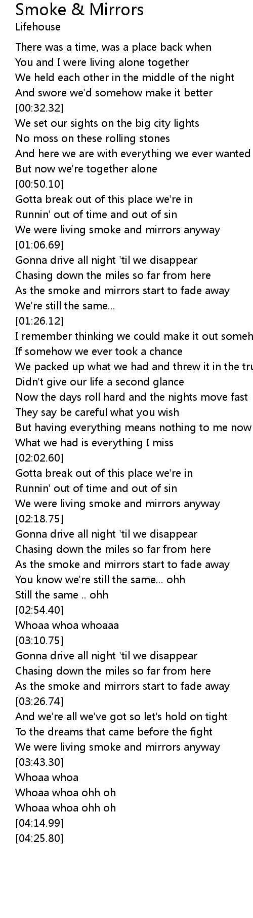 We were living smoke and mirrors anyway |