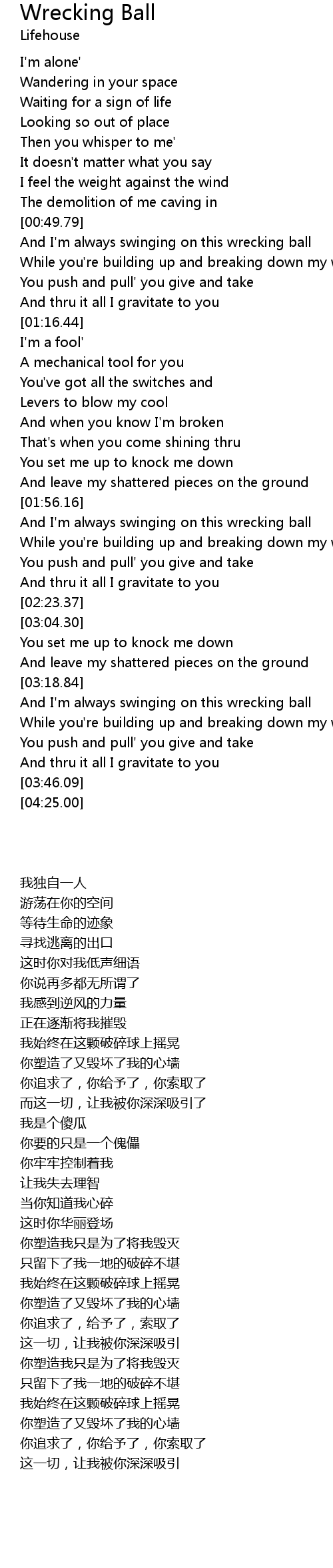 And I'm always swinging on this wrecking ball |