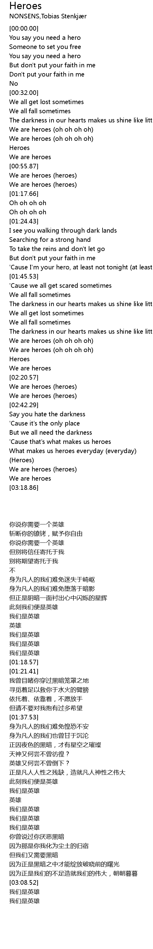 | [00:46.89] | We are heroes (oh oh oh oh) |