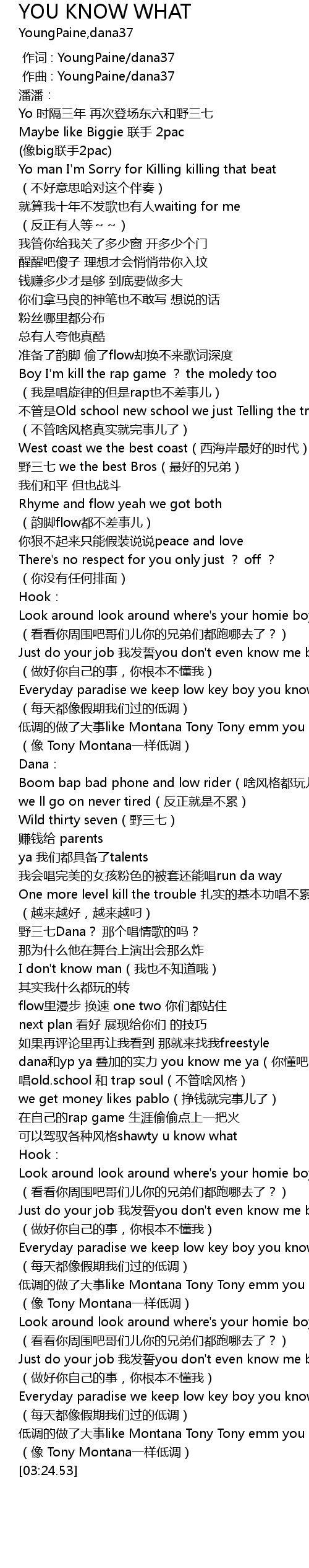 | [02:22.20] | dana和yp ya 叠加的实力 you know me ya(你懂吧?) |
