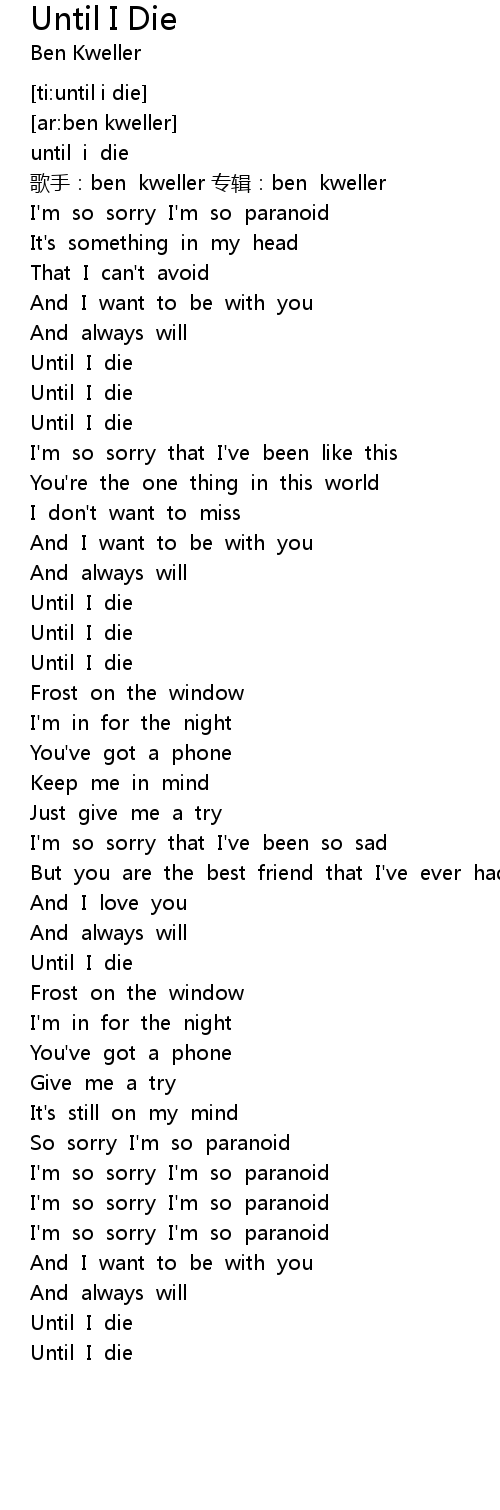 | [00:13.84] | I' m so sorry I' m so paranoid |