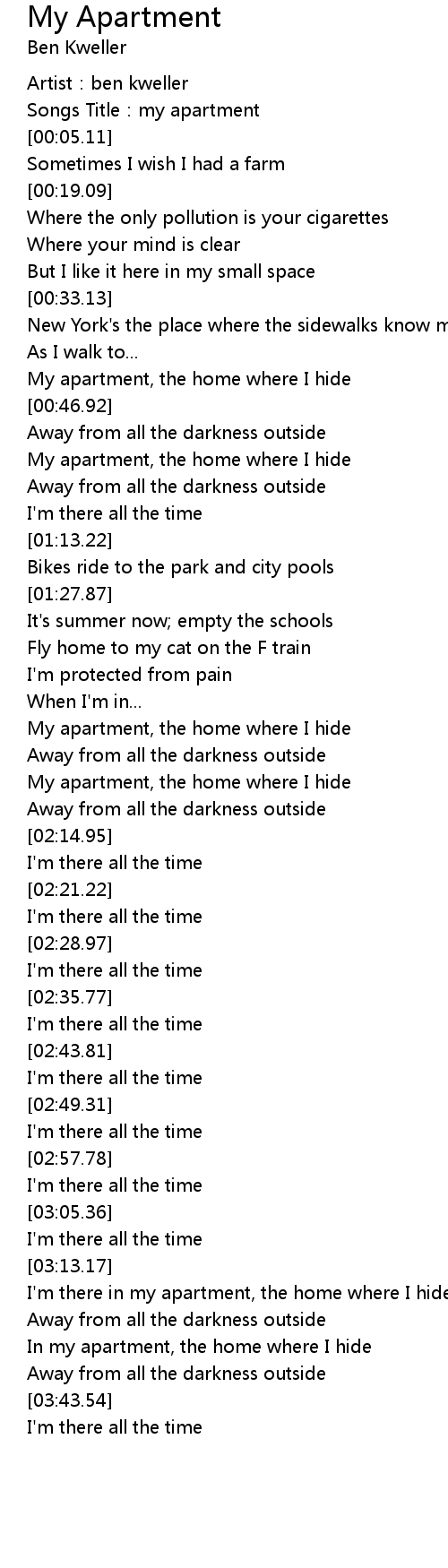 | [00:02.64] | Songs Title:my apartment |