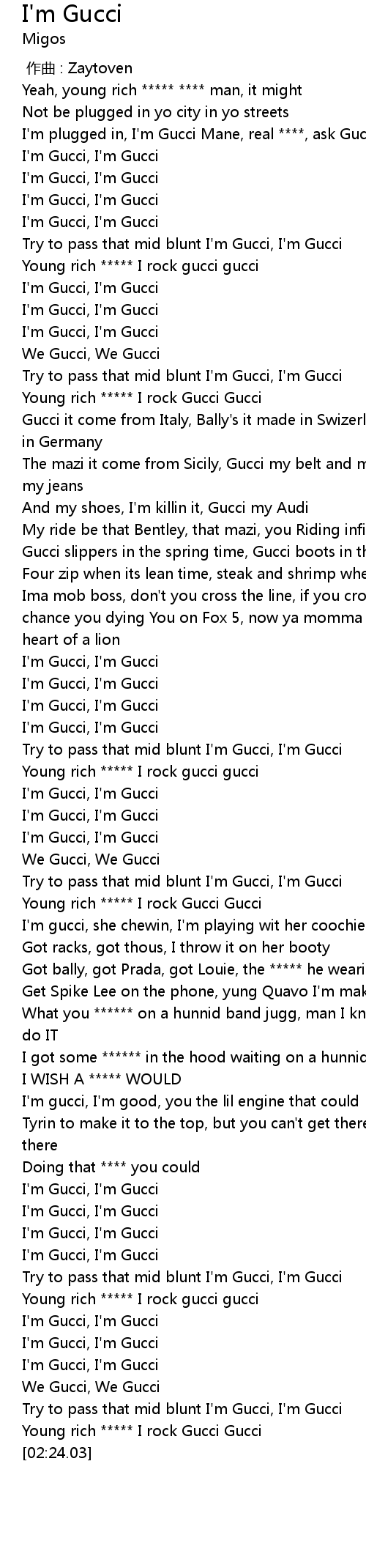 | [02:12.23] | I'm Gucci, I'm Gucci |
