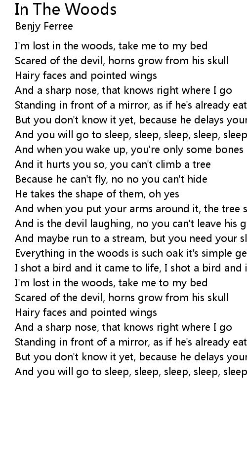 I'm lost in the woods, take me to my bed |