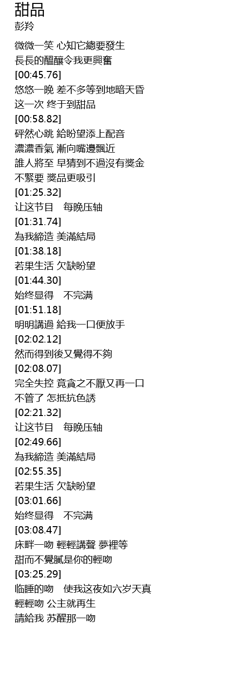 | [03:19.85] | 甜而不覺膩是你的輕吻 |