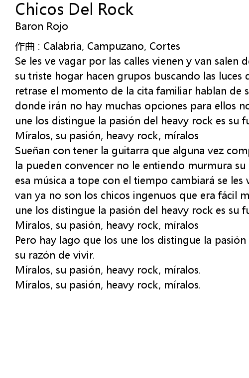 | Sue an con tener la guitarra que alguna vez comprara su madre a escondidas si la pueden convencer no le entiendo murmura su padre es por la edad siempre tiene esa mu sica a tope con el tiempo cambiara se les ve vagar por la calles a donde van ya no son los chicos ingenuos que era fa cil manejar pero hay lago que los une los distingue la pasio n del heavy rock es su fuerza, su razo n de vivir | |