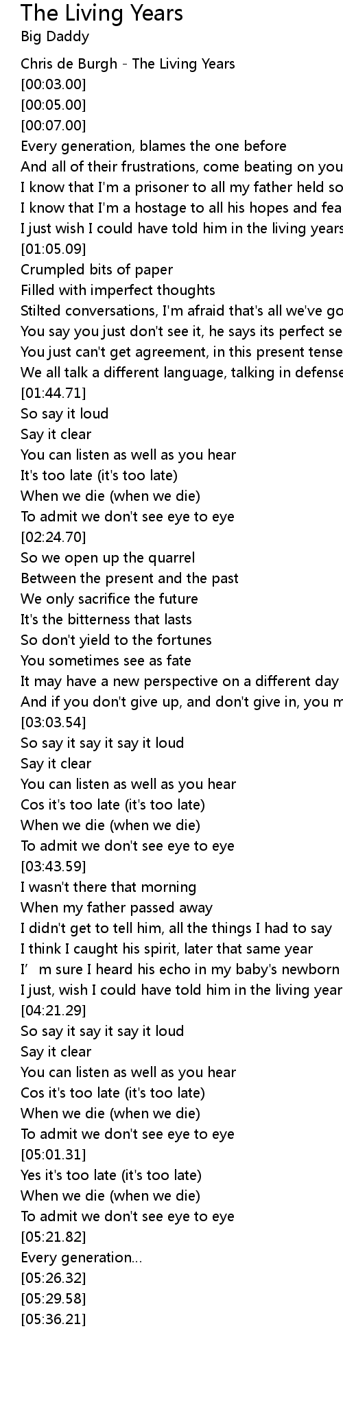 | [00:01.00] | Chris de Burgh - The Living Years |