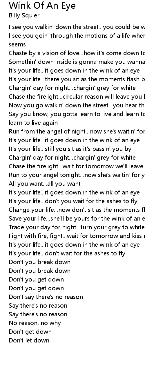 It's your life...it goes down in the wink of an eye |