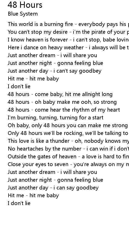 Oh baby, only 48 hours you can make me strong and say |