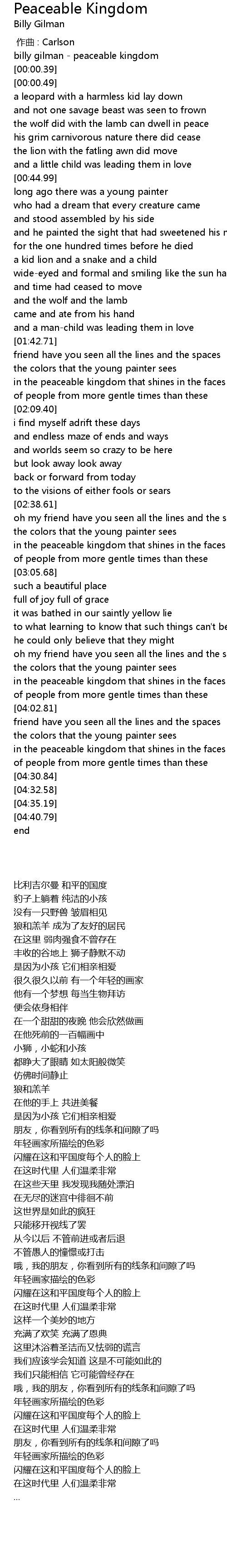 | [00:00.00] | billy gilman - peaceable kingdom |