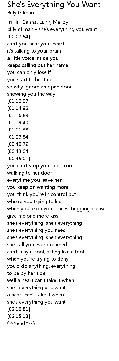 | [01:28.11][00:43.04] | she' s everything you want |